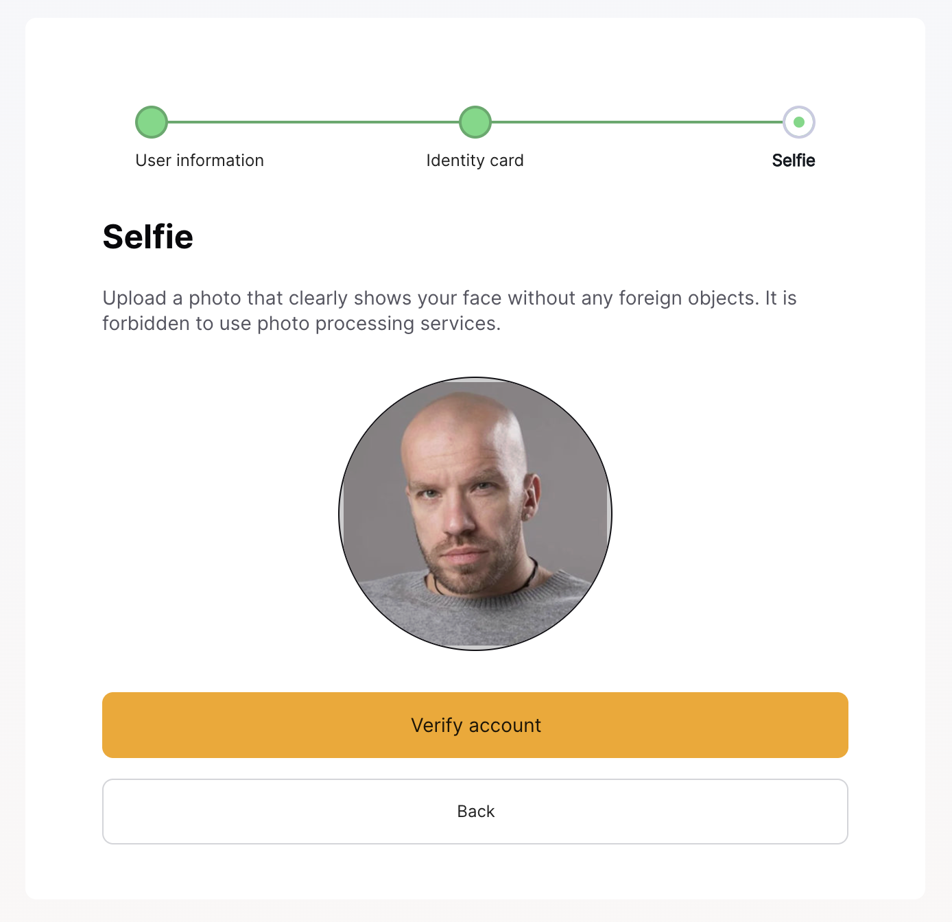 - KYC verification accepts any photo uploaded from a computer